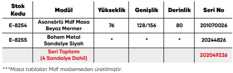 Asansörlü Mdf Masa Beyaz Mermer