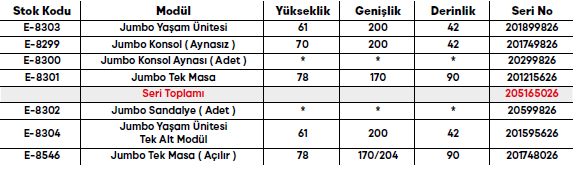 Jumbo Yemek Odası Takımı
