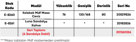 Kelebek Mdf Masa Ceviz