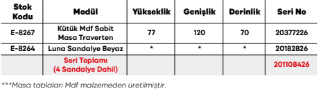 Kütük Mdf Sabit Masa Beyaz