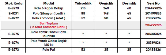 Polo Yatak Odası Takımı